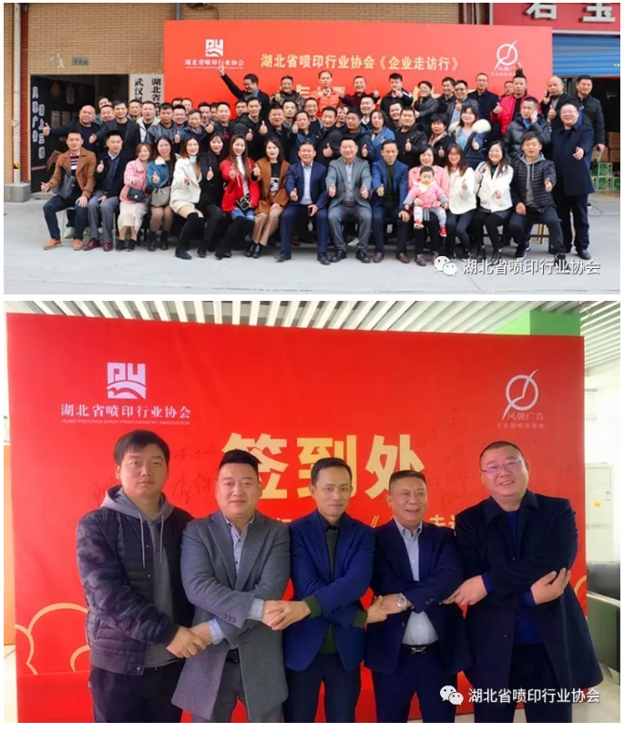 2019年12月6日上午,秋日的阳光洒满大地,暖和祥容。硚口区长丰大道46号明达工业园B栋,大楼门前,湖北省喷印行业协会会员走访行活动第三站的迎宾桁架和指引标牌,依次摆放,喜气迎人,来自省内的100多位同行,走进湖北省喷印行业协会常务副会长单位——武汉风驰世纪喷绘有限公司。湖北省喷印行业协会会长王世章、执行会长李保军、常务副会长涂圣红、副会长兼党支部书记黄伟、副会长姚超、汪金玉、赵晓冬、监事长宋文政等莅临出席会议。
