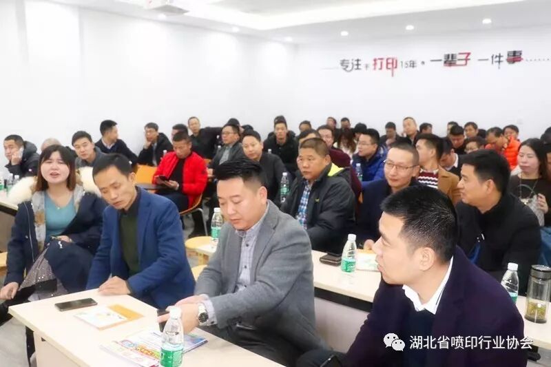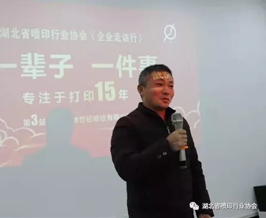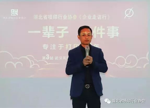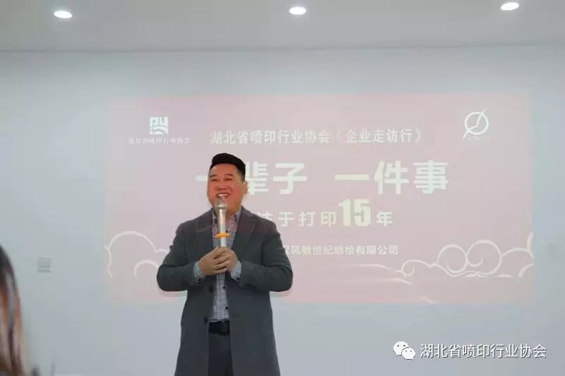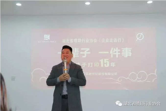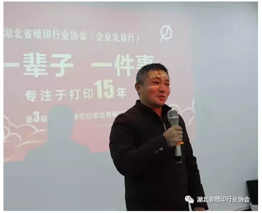 湖北省喷印行业协会“企业走访行活动”第四站的承办方——协会新任理事单位——武汉壹品盛世广告有限公司吴早先总经理也来到现场,亲自发出邀请,欢迎大家12月13日星期五下午去壹品盛世公司参观走访,交流品茶。↓