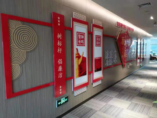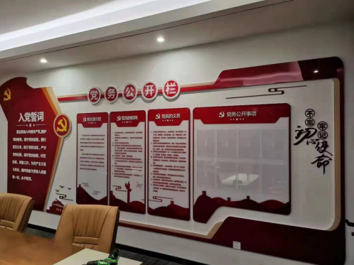 党建文化墙适用于比较大的前厅,进行政务公开、党务公开的政策宣传地方使用。通过文化墙推广宣传,借墙接稳地气,装点了企业文化环境,进一步提升基层党建的文化内涵,使广大党员职工在浓厚的文化氛围中增长知识,提振精神,凝聚合力,坚定信心永远跟党走。