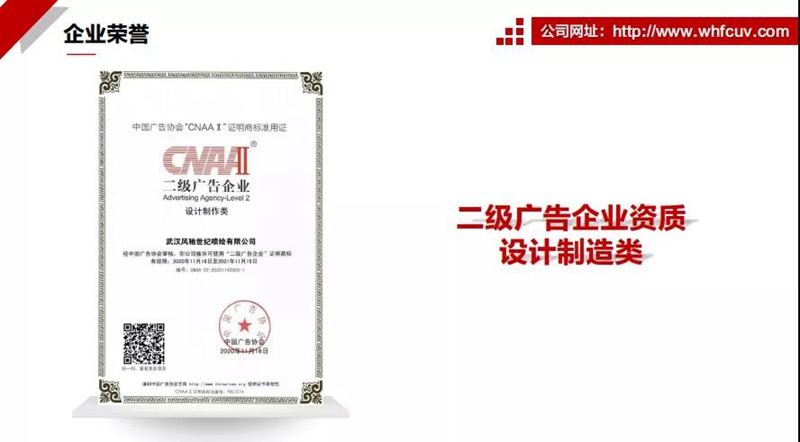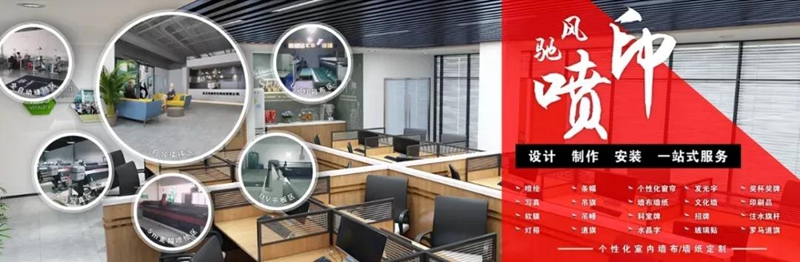 武汉风驰世纪喷绘有限公司成立于2016年,是一家集设计、策划、制作、安装及产品定制(如写真、喷绘、灯箱、UV灯箱画面、墙布定制及UV平板科室牌、标牌喷印等大型户内外广告工程)的现代化综合型广告公司。公司以“为高端品牌客户提升品质,为商业客户创造价值,诚信第一,品质至上”为服务宗旨。