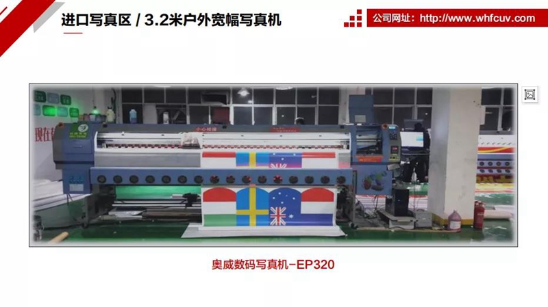 公司经过多年拼搏、开拓创新,现拥有5000平方的广告生产基地,全新进口爱普生B9080户内写真机二十台,罗兰、爱普生S60680/S80680户外写真机共十台,奥威无气味3.2米溶剂户外写真机一台,奥威喷绘机五台,JHF5米喷绘机两台,JHF3x2UV平板四台、JHFR7000两台、JHFR3700两台。后期工艺已全部改革升级,采用全自动覆膜机四台、经纬自动裁切机五台。